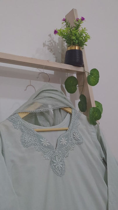 Soft lawn – lightweight and breathable in a soft pastel green hue is perfect blend of simplicity with elegance for everyday sophistication.