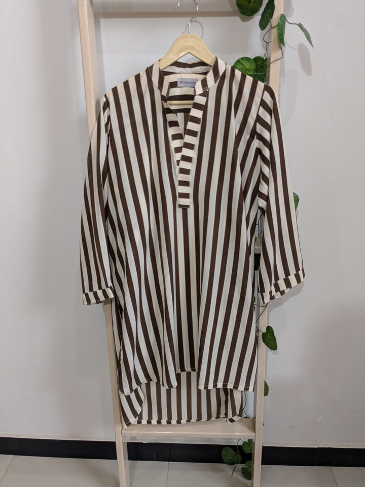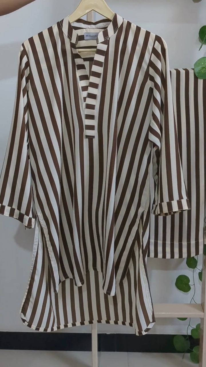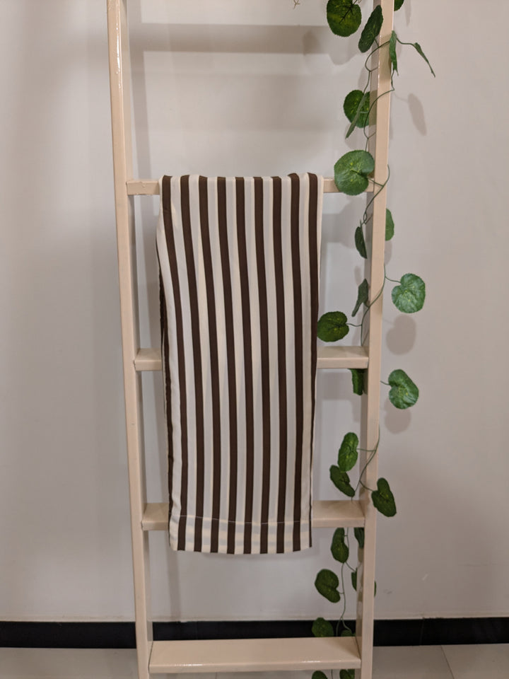 Color: Off-white and brown vertical stripes