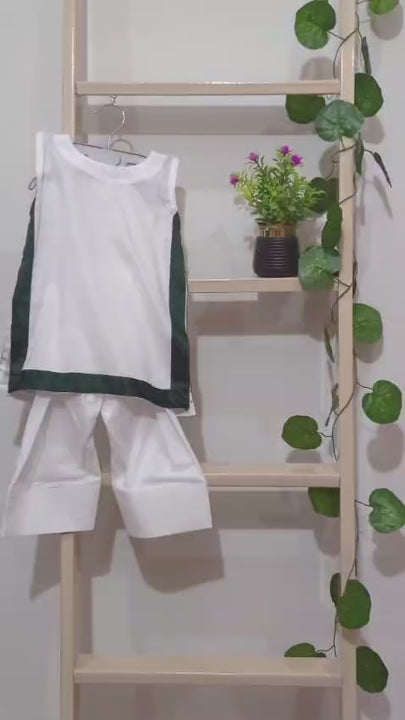 Top: Short shirt with green fabric detailing. Fabric-lawn